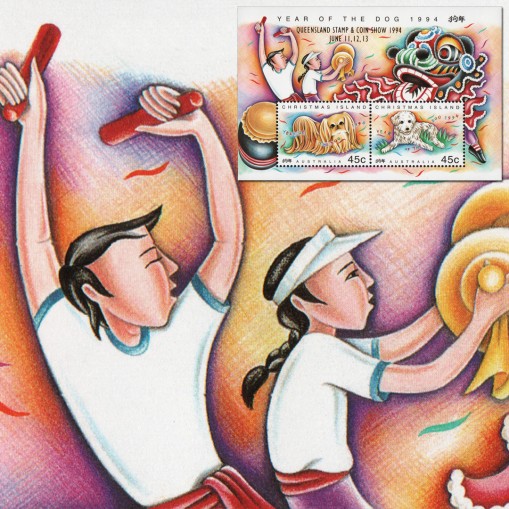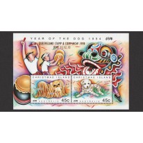 Seria w bloku wydanym pierwotnie z okazji chińskiego Nowego Roku - Roku Psa, tym razem ze złotym nadrukiem upamiętniającym wystawę filatelistyczno-numizmatyczną w australijskim Queensland.