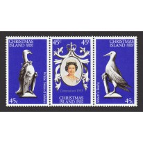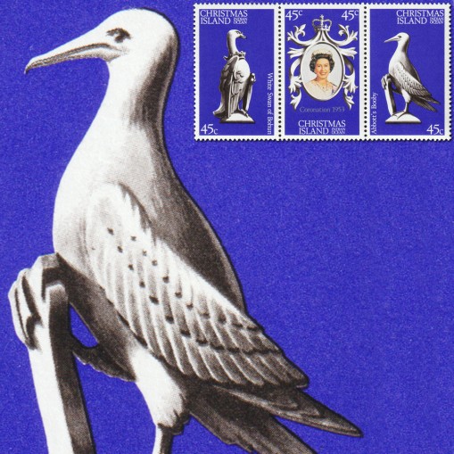Na znaczkach widnieją kolejno: biały łabędź z herbu brytyjskiego rodu Bohun (rzeźba ta jest jedną z dziesięciu figur heraldycznych reprezentujących genealogię Elżbiety II wykonanych na okazję koronacji monarchini), portret Elżbiety II oraz głuptak czarnoskrzydły (Papasula abbotti) - gatunek endemiczny występujący wyłącznie na Wyspie Bożego Narodzenia.