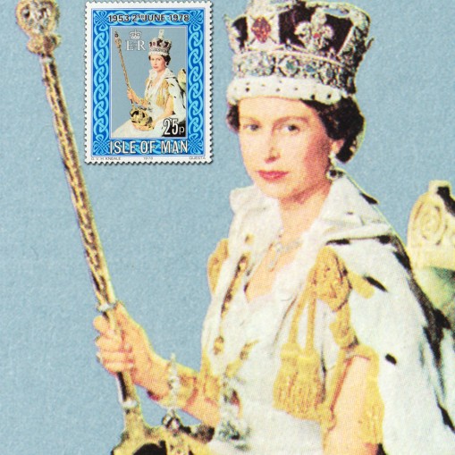 Na znaczku widnieje Elżbieta II z insygniami królewskimi.