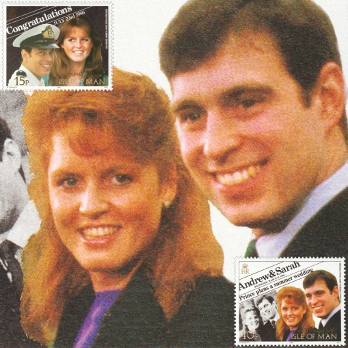Znaczki upamiętniające ślub księcia Andrew i Sary Ferguson.