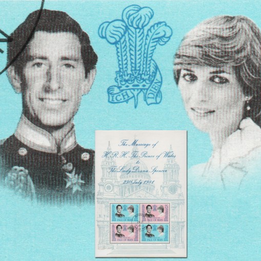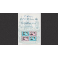 Znaczki w bloku kasowanym grzecznościowo upamiętniające ślub Karola, księcia Walii i Diany Spencer.