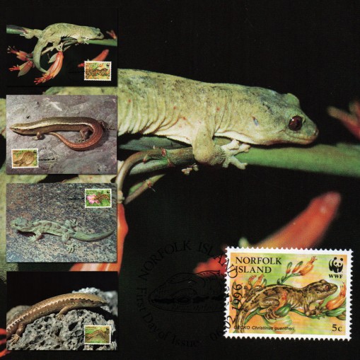 Na znaczkach i kartach widnieją jaszczurki Christinus guentheri i Pseudomoia lichenigera.