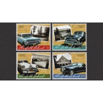 Na znaczkach widnieją zabytkowe samochody, kolejno: