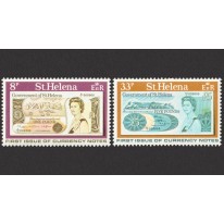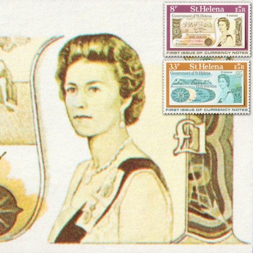Znaczki upamiętniające wydanie nowych banknotów uwiecznionych na znaczkach.