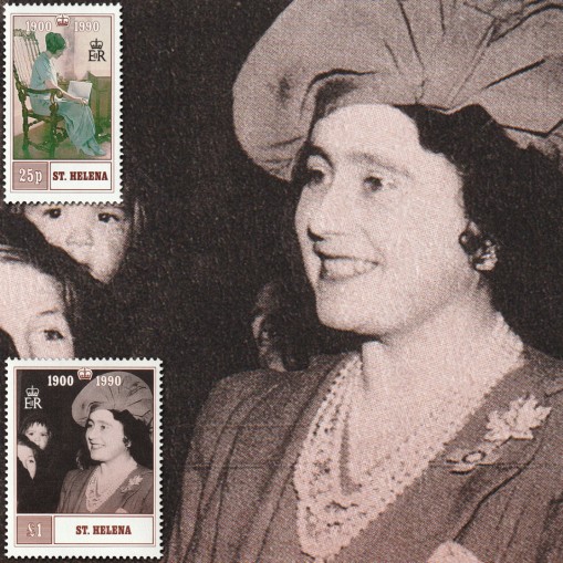 Znaczki upamiętniające 90. urodziny brytyjskiej królowej matki Elżbiety.