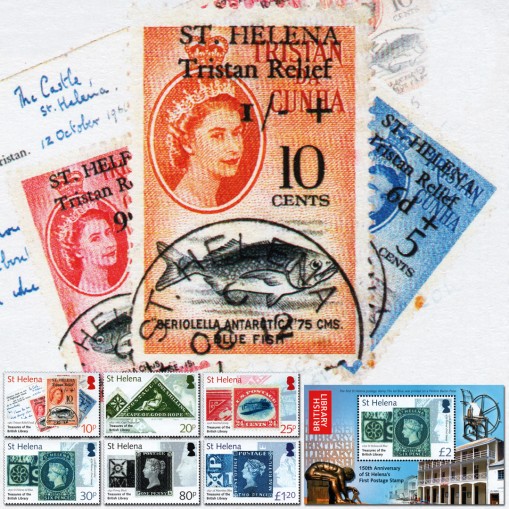 Seria i blok upamiętniające 150. rocznicę wydania pierwszych znaczków pocztowych dla Wyspy Świętej Heleny.
