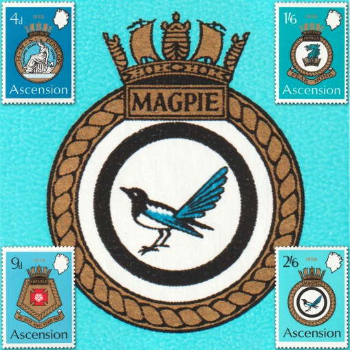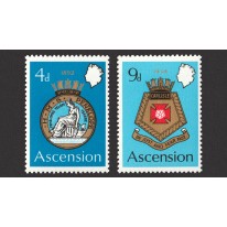 Na znaczkach przedstawiono herby brytyjskich okrętów wojennych, kolejno: