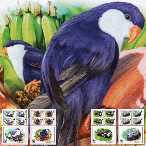 Na znaczkach widnieje ptak loreczka białogardła.