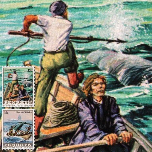 Znaczki z serii promującej ukrócenie wielorybnictwa.