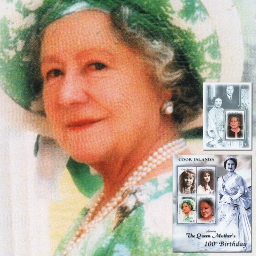 Seria w arkuszu i blok upamiętniające setną rocznicę urodzin Elżbiety Królowej Matki.