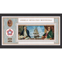 Znaczek w bloku upamiętniający 200. rocznicę rewolucji amerykańskiej.