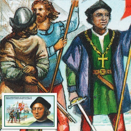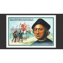 Znaczek w bloku upamiętniający 500. rocznicę dotarcia do Ameryki przez Krzysztofa Kolumba.