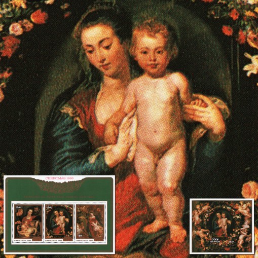 Na znaczkach widnieją dzieła malarstwa Petera Paula Rubensa, kolejno: „Święta Rodzina ze świętymi Janem i Elżbietą”, „Madonna w girlandzie” i „Pokłon Trzech Króli”.