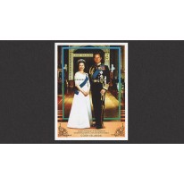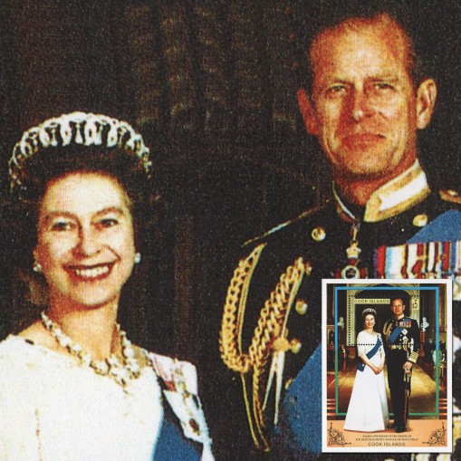 Znaczek w bloku upamiętniający 50. rocznicę ślubu królowej Elżbiety II i księcia Filipa.