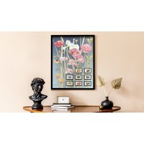 Plansza oprawiona jest w elegancką, nowoczesną ramę aluminiową w kolorze czarnym o lekko szczotkowanej powierzchni, z szybą szklaną. Profil ramy mierzy 10 mm szerokości i 18mm wysokości. Rama wyposażona jest w zawieszkę umożliwiającą zawieszenie jej na ścianie.