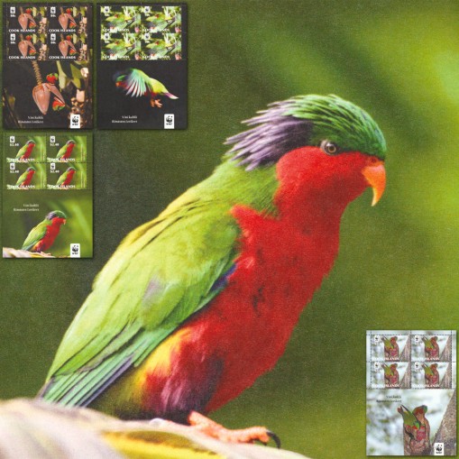Na znaczkach widnieje gatunek papugi - loreczka rubinowa (Vini kuhlii).