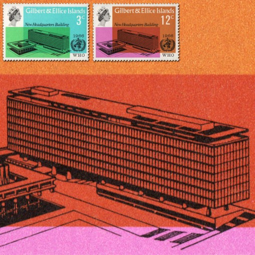 Seria upamiętniająca otwarcie kwatery głównej Światowej Organizacji Zdrowia (WHO) w Genewie. Na znaczkach przedstawiono budynek i logo WHO.