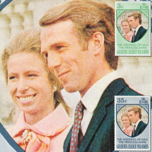 Znaczki upamiętniające ślub księżniczki Anny (córki królowej Elżbiety II) i Marka Phillipsa.