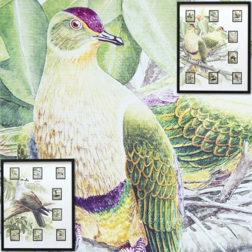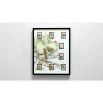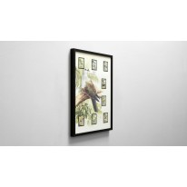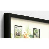 Elegancka, innowacyjna i niezmiernie efektowna wizualnie metoda prezentacji znaczków - kompletna seria wyeksponowana na dwóch planszach z ilustracjami i oprawiona w ramy.