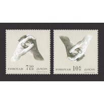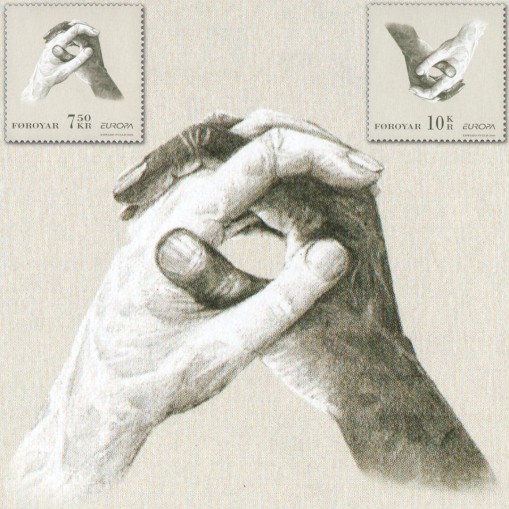 Na znaczkach z Wysp Owczych widnieją dwie splecione ze sobą dłonie: czarna i biała.