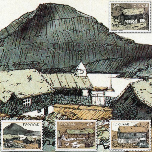 Na znaczkach widnieją tradycyjne domy wiejskie w Nordragøta na wyspie Eysturoy w archipelagu Wysp Owczych. Ich nazwy to kolejno: „Glyvra-Hanus-Haus", „Blasastova" i „Jakupsstova".