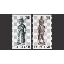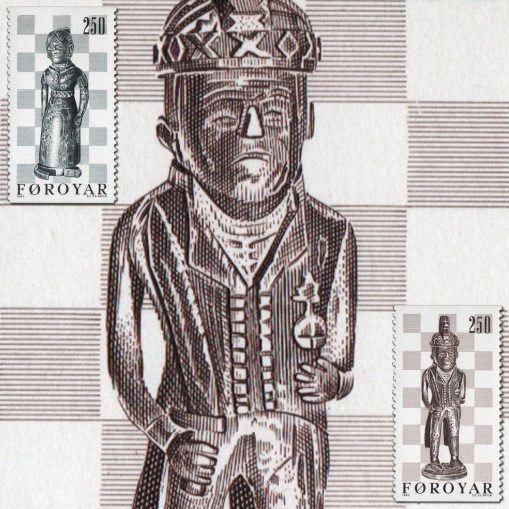 Na znaczkach widnieją XIX-wieczne farerskie figury szachowe (król i królowa) wykonane przez Pola i Buda z wyspy Nolsoy.