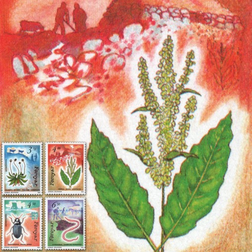 Na znaczkach widnieją następujące gatunki flory i fauny zawleczone na Wyspy Owcze przez człowieka (taki sposób rozprzestrzeniania się gatunków zwany jest antoropochorią):