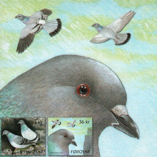 Na znaczkach widnieje gołąb skalny (Columba livia).