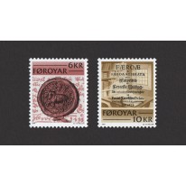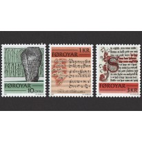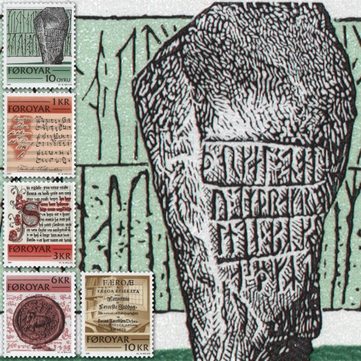 Na znaczkach widnieją wczesne zapiski historyczne z Wysp Owczych, kolejno: