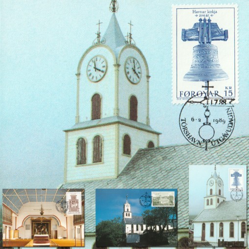 Znaczki upamiętniające dwustulecie katedry w Torshavn, zwanej także Havnar Kirkja.