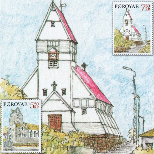 Na znaczkach widnieją kościoły w Vagur i Tvøroyri.
