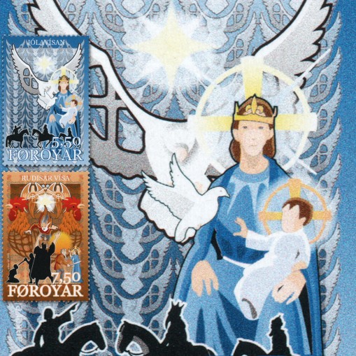 Na znaczkach widnieją ilustracje farerskich pieśni bożonarodzeniowych.