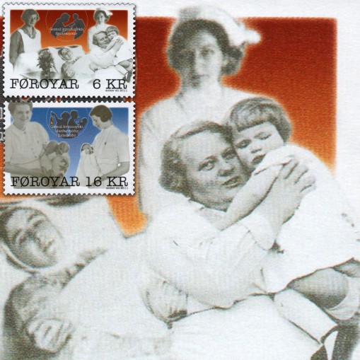 Znaczki celebrujące tradycyjne zawody kobiece: pielęgniarstwo i położnictwo.