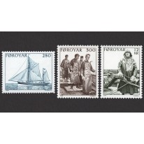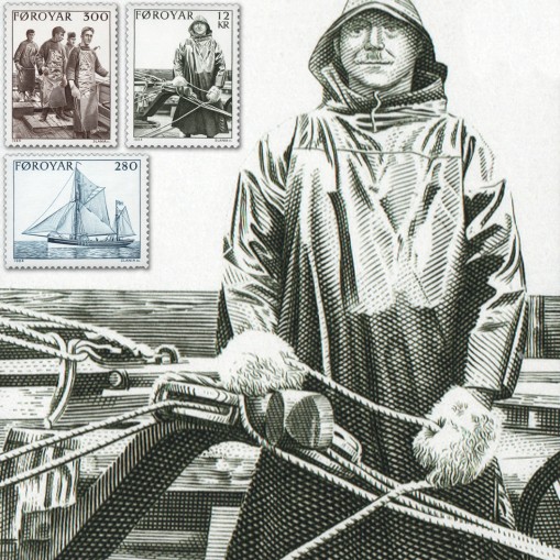 Na znaczkach widnieją farerscy rybacy i kecz rybacki „Westward Ho".