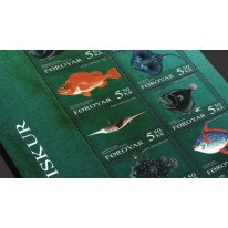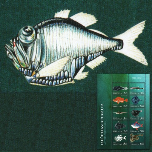 Na znaczkach widnieją następujące gatunki ryb zamieszkujące wody u wybrzeży Wysp Owczych: