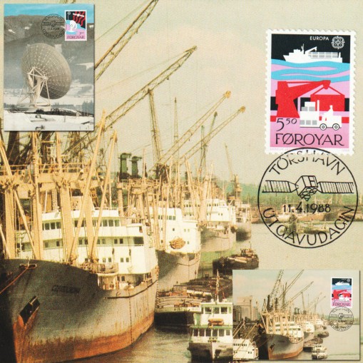 Znaczki na kartach maksimum z emisji EUROPA CEPT z 1988 roku, której tematem przewodnim były transport i telekomunikacja.