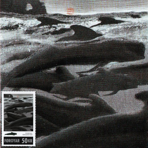 Na znaczku widnieje grindwal (Globicephala melas), rodzaj ssaka z rodziny delfinowatych.