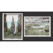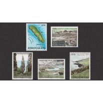 Na znaczkach widnieją pejzaże Wyspy Hestur - najdalej wysuniętej na zachód wyspy wchodzącej w skład archipelagu Wysp Owczych, kolejno: