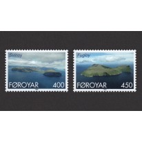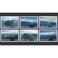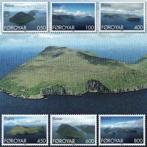 Na znaczkach przedstawiono wyspy w archipelagu Wysp Owczych widziane z lotu ptaka, kolejno: Kalsoy, Vidoy, Svinoy, Fugloy, Kunoy i Bordoy.
