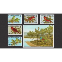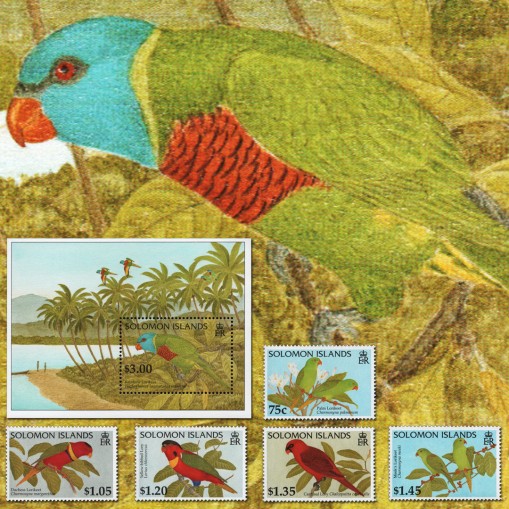 Seria i blok, na znaczkach których widnieją następujące gatunki papug: