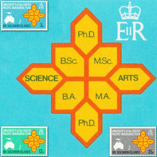 Znaczki upamiętniające otwarcie Uniwersytet Południowego Pacyfiku.