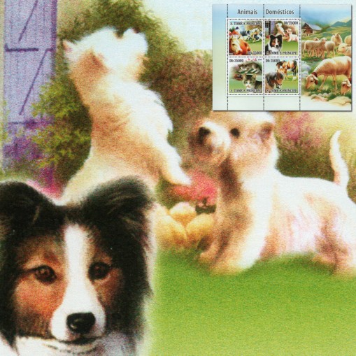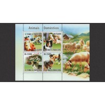 Seria w arkuszu, na znaczkach której widnieją zwierzęta domowe: koty, psy, konie i krowy.