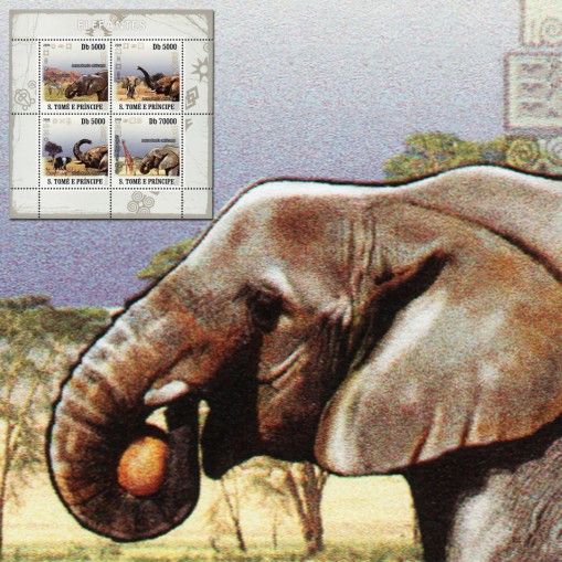 Seria w arkuszu, na znaczkach widnieje słoń afrykański.