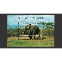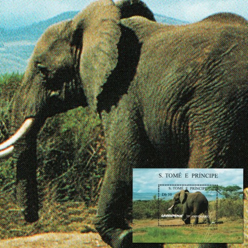 Znaczek w bloku upamiętniający 25-lecie organizacji Greenpeace.