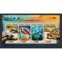 Seria w arkuszu i blok, na znaczkach których widnieją następujące gatunki żółwi: