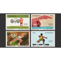 Na znaczkach widnieją rysunki dzieci przedstawiające kolarstwo, pływanie, bieg i bieg przez płotki.