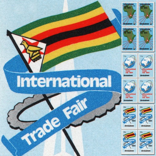 Seria w czwórkach z narożników arkuszy upamiętniająca międzynarodowe targi w Zimbabwe.