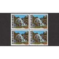Znaczek w czwórce z narożnika arkusza, na którym widnieją wodospady Bundi Falls.