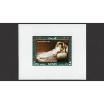 Znaczek w bloku, na którym widnieje obraz Francisco Goi „Maja ubrana”.